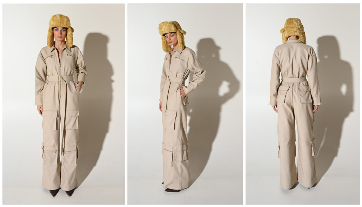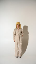 Fashioned from cotton in beige color, this ESAI’s denim long-sleeved jumpsuit cuts a striking silhouette. Finished with wide-legs and cargo pockets, let yours add a utilitarian feel to workwear rotation. It has a tonal belt with buckle to cinch the waist.
